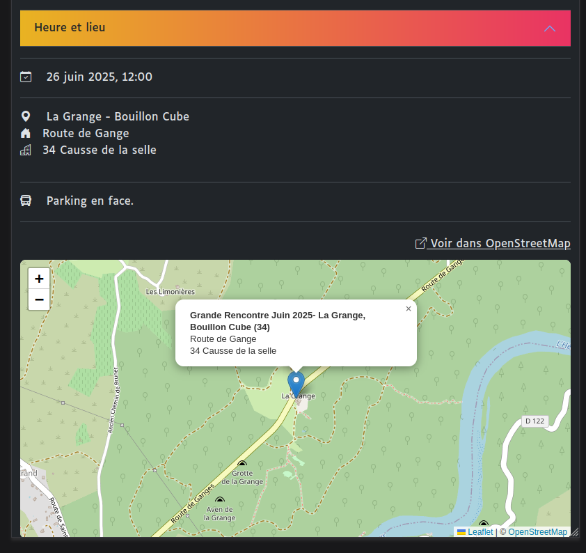 De plus, si vous ajoutez des coordonnées GPS, une carte OpenStreetMap sera affichée.